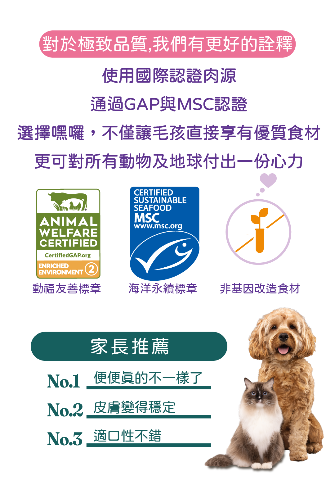 新鮮鮭魚,新鮮白魚,甘薯,豌豆,啤酒酵母粉,豬肉,豌豆蛋白,鷹嘴豆,扁豆,